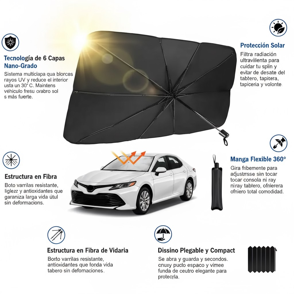 ¿Cansado de entrar a un auto sofocante cada vez que lo usas? Nuestra Sombrilla Plegable bloquea el calor y los rayos UV, manteniendo tu auto fresco y listo para salir.
